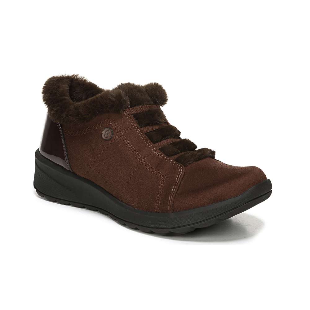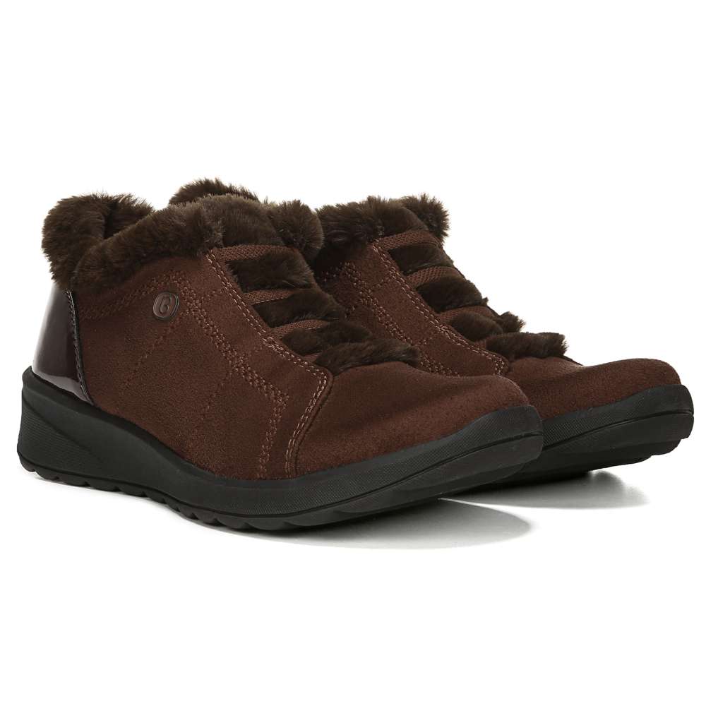 • Stretch fabric upper with faux fur lining in a casual bootie style with a round toe.